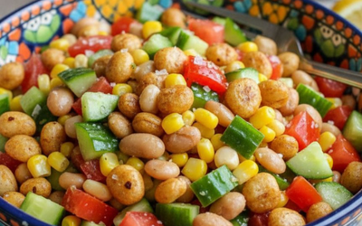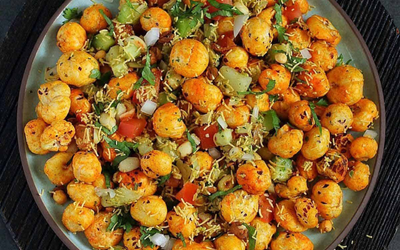 Combine roasted makhana with cucumber, tomato, corn, and boiled beans.
